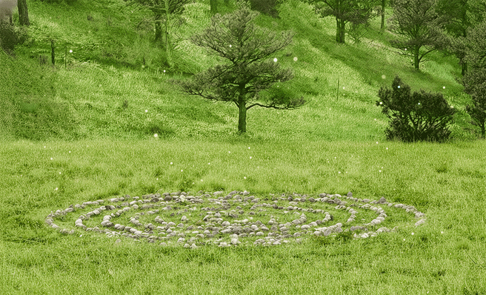 The property includes a Damanhur-initiated spiral (a prayer vortex) that clients are welcome to walk before or after sessions to set intention and ground their experience.